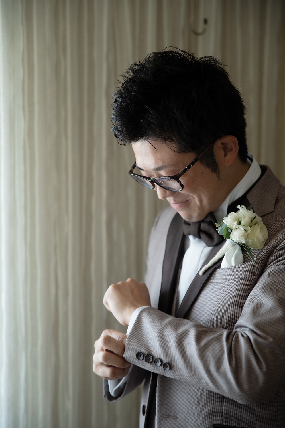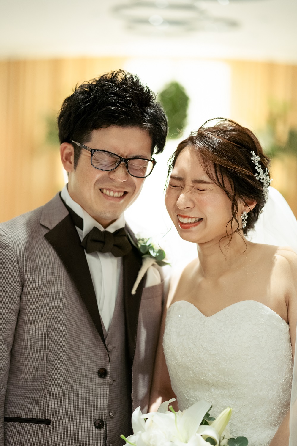 新郎様はカジュアルに新婦様は綺麗なブラウンのドレスへ