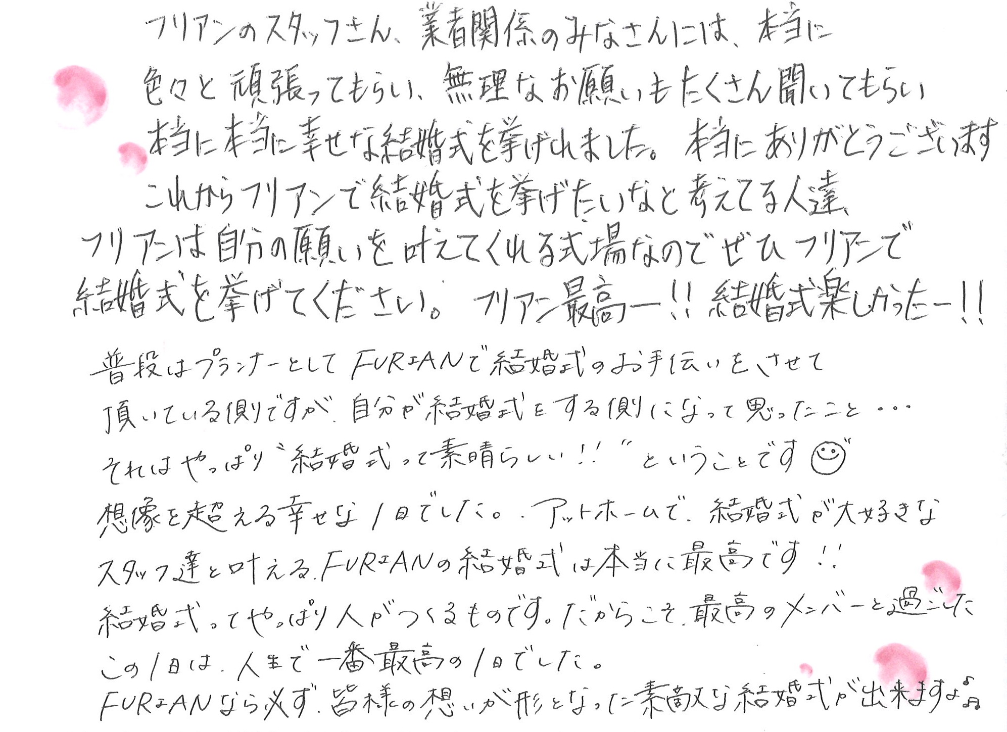 ☆大好きなスタッフの結婚式☆(2018.1.17 UP)