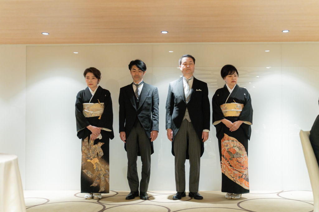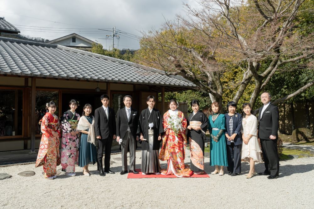 お二人は和装姿で、ご家族の皆様と集合写真を撮影♪
