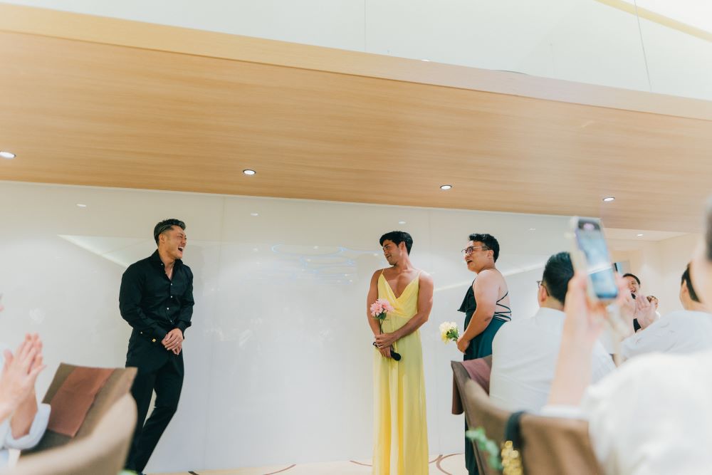お二人の結婚式のスタイルはゲストの皆様に結婚を誓う「人前式」。