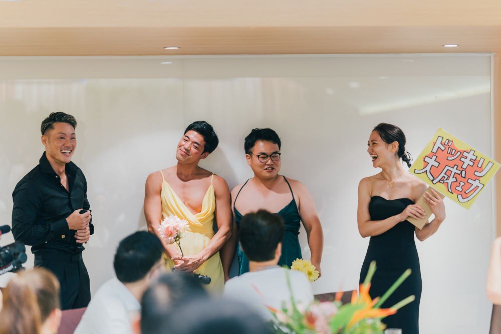 余興ではムキムキに鍛えている新郎様とご友人様が新婦様をお姫様抱っこでスクワット!!!