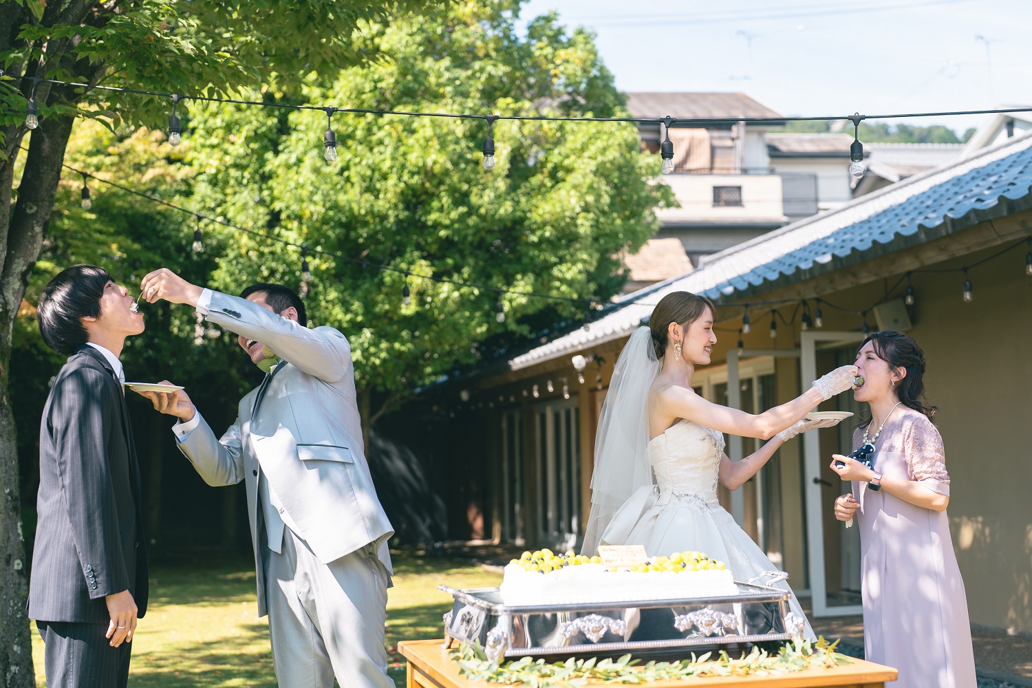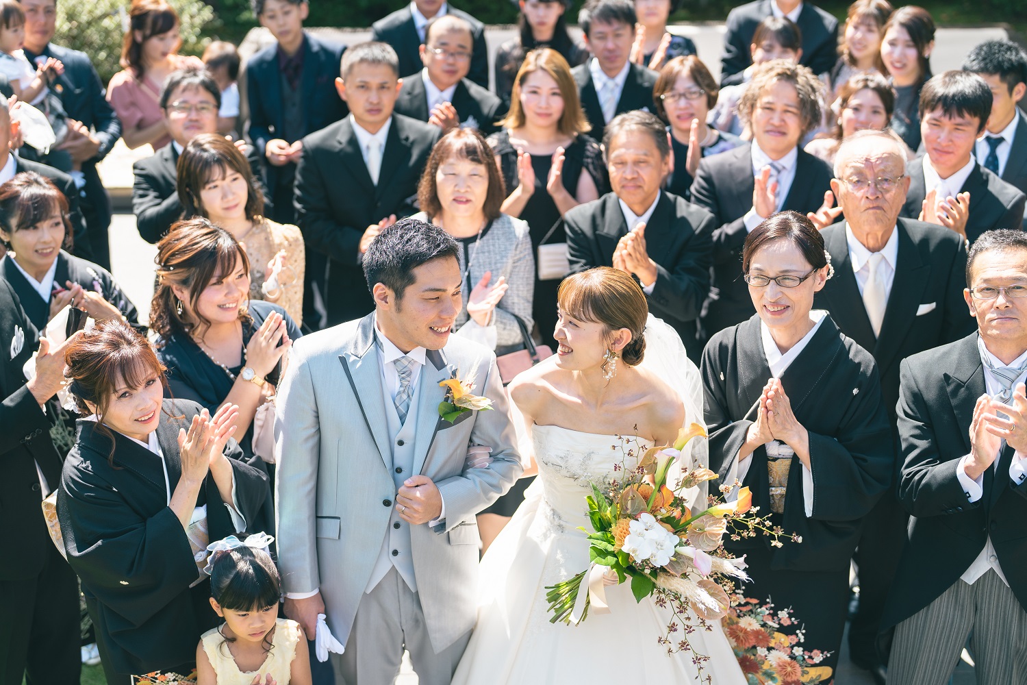 フラワーシャワーやゲストとの写真撮影を楽しみました。