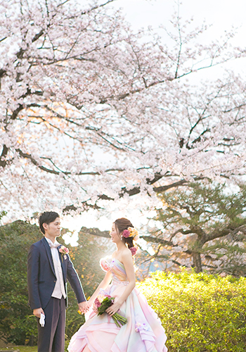 私たちは前撮りは秋のもみじの季節に、式は春の桜の季節に挙げました。