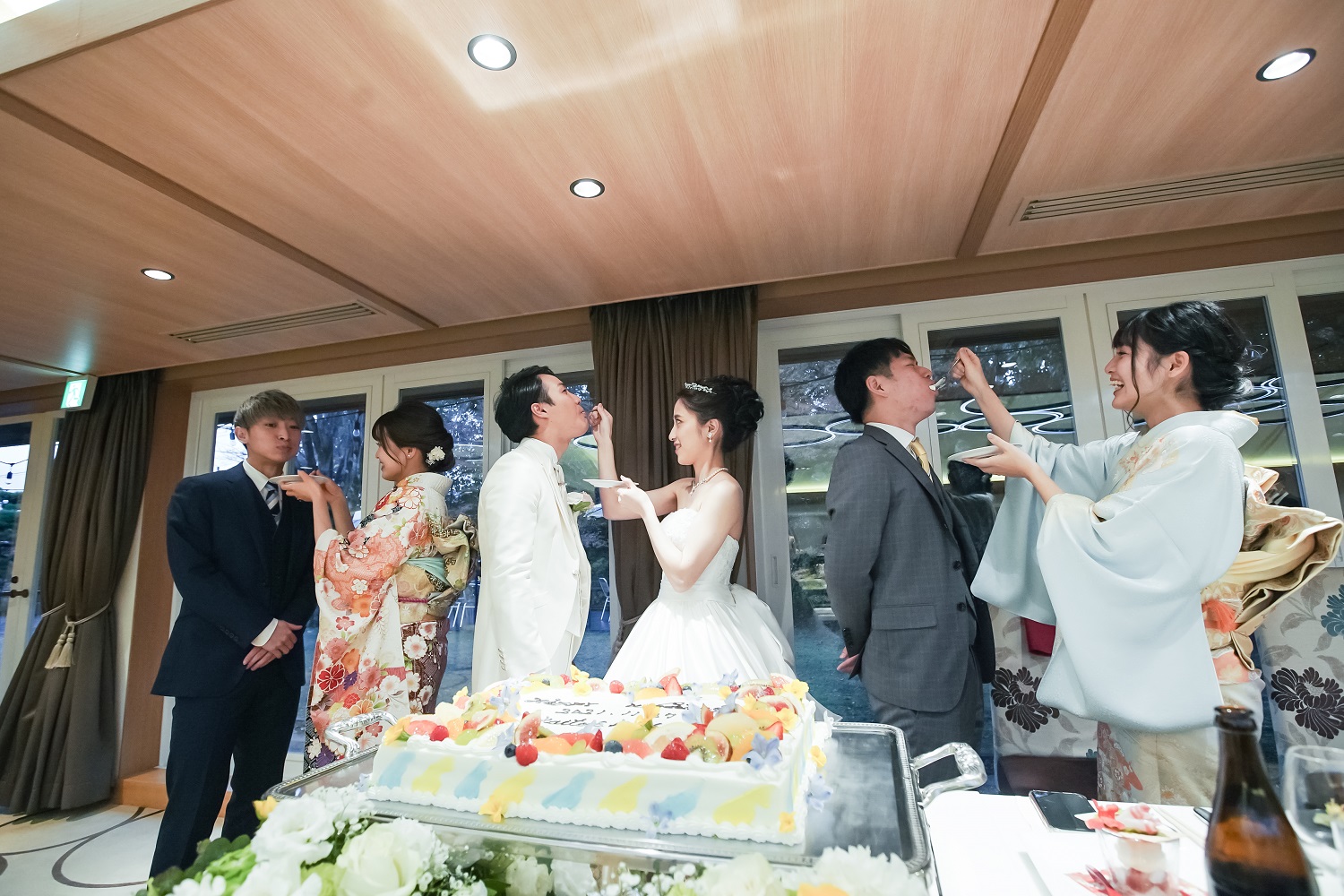 披露宴では、同級生カップルと一緒にファーストバイト!