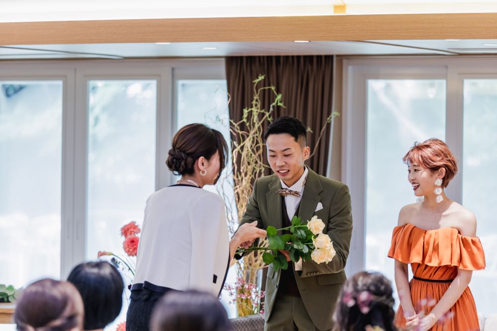 そしてお開きが近づき、今までお世話になったお母様へ花束贈呈のセレモニー。