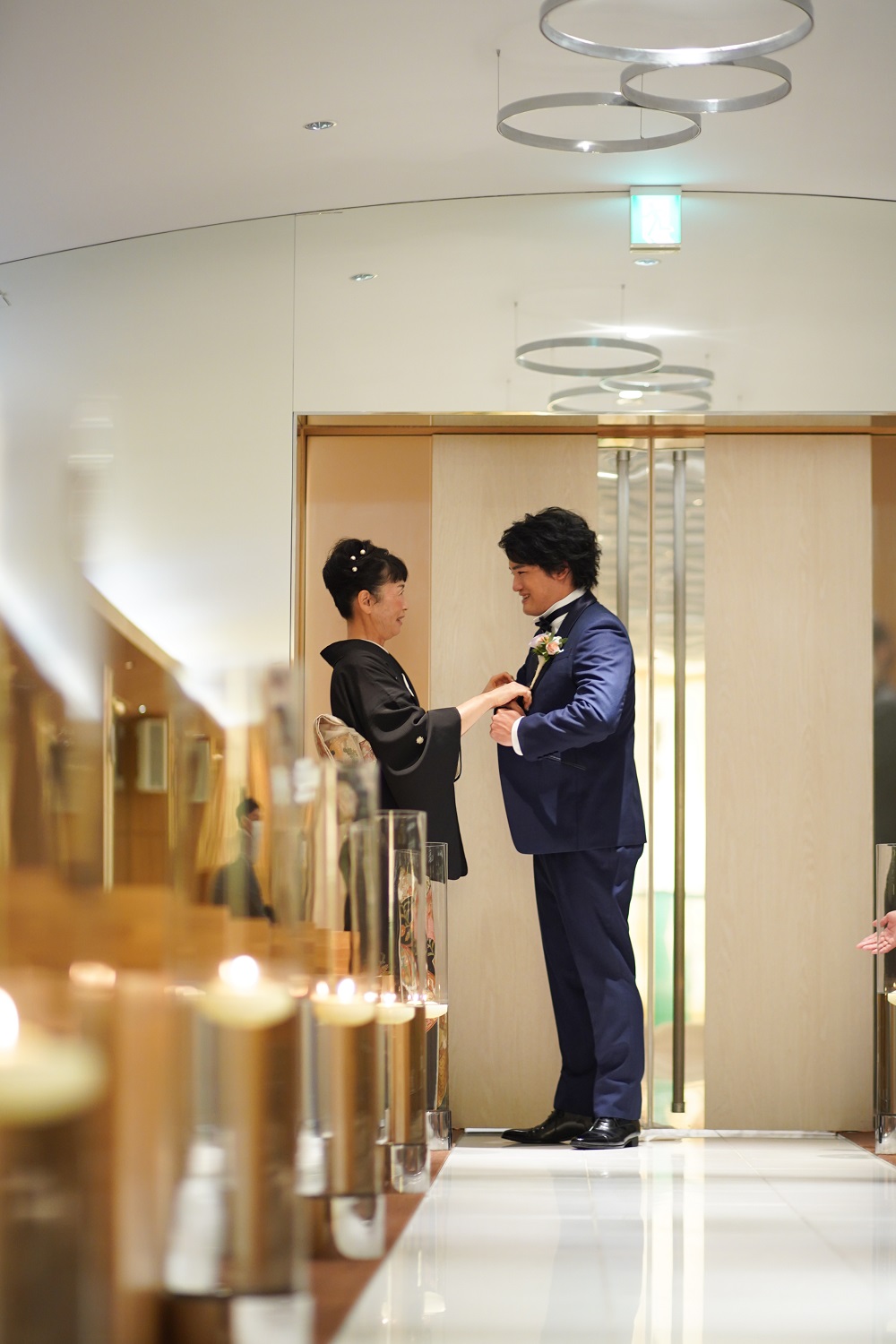新郎入場の際には、新郎のお母様にお手伝いして頂き、