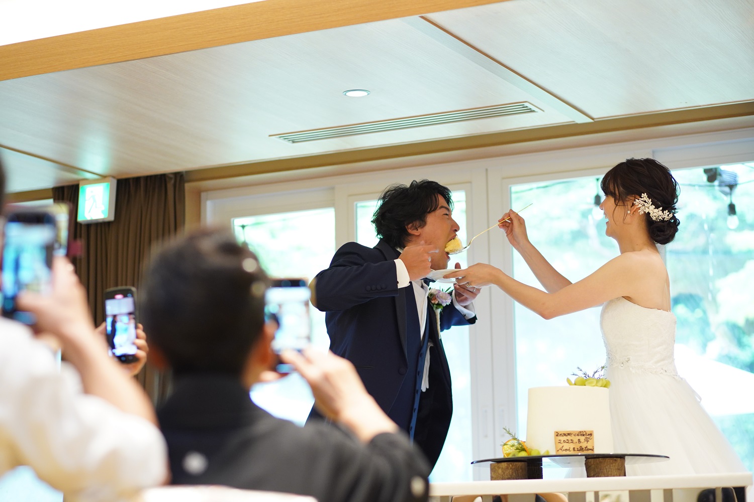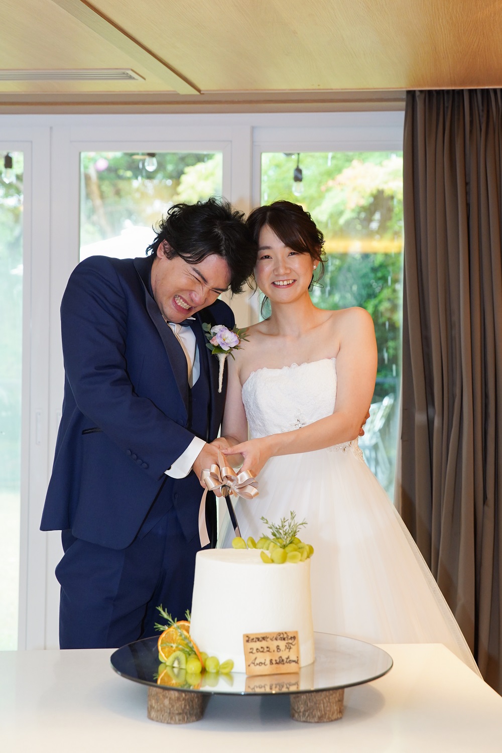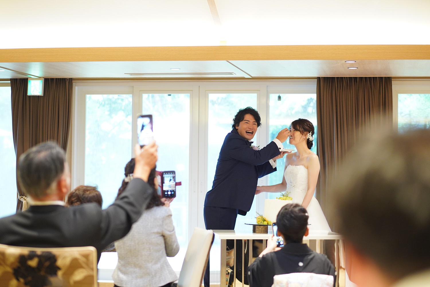 ケーキ入刀では、ちょっとふざける新郎様(笑)