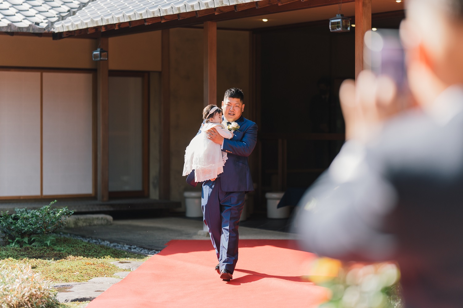 まずは、おふたりのお子様と新郎様がご入場!