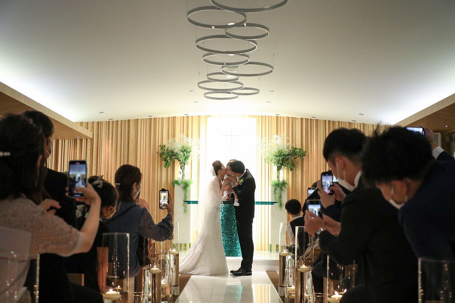 そのあとのウエディングキスでは、おふたりだけではなく、