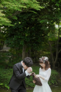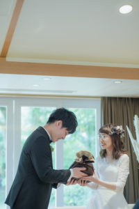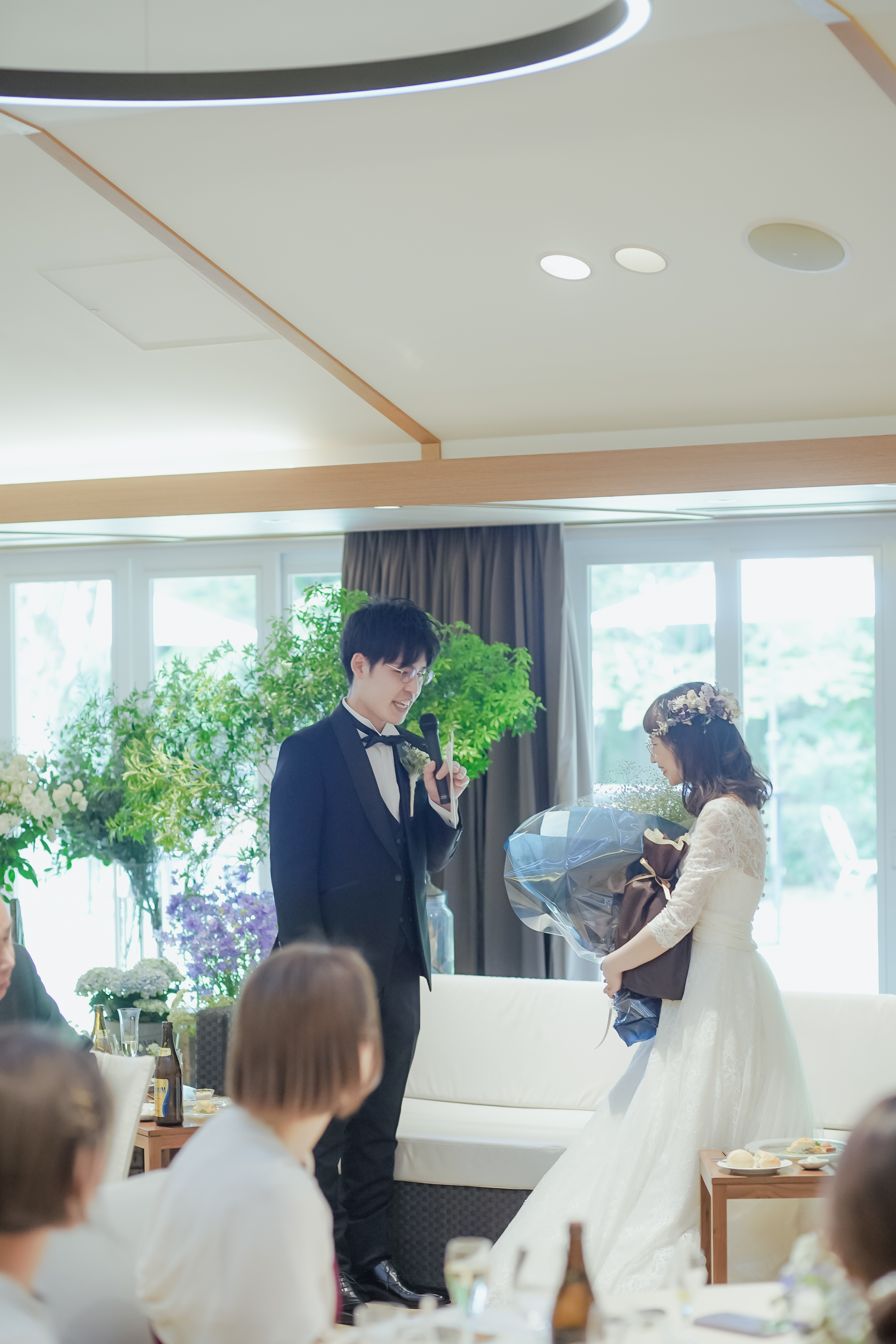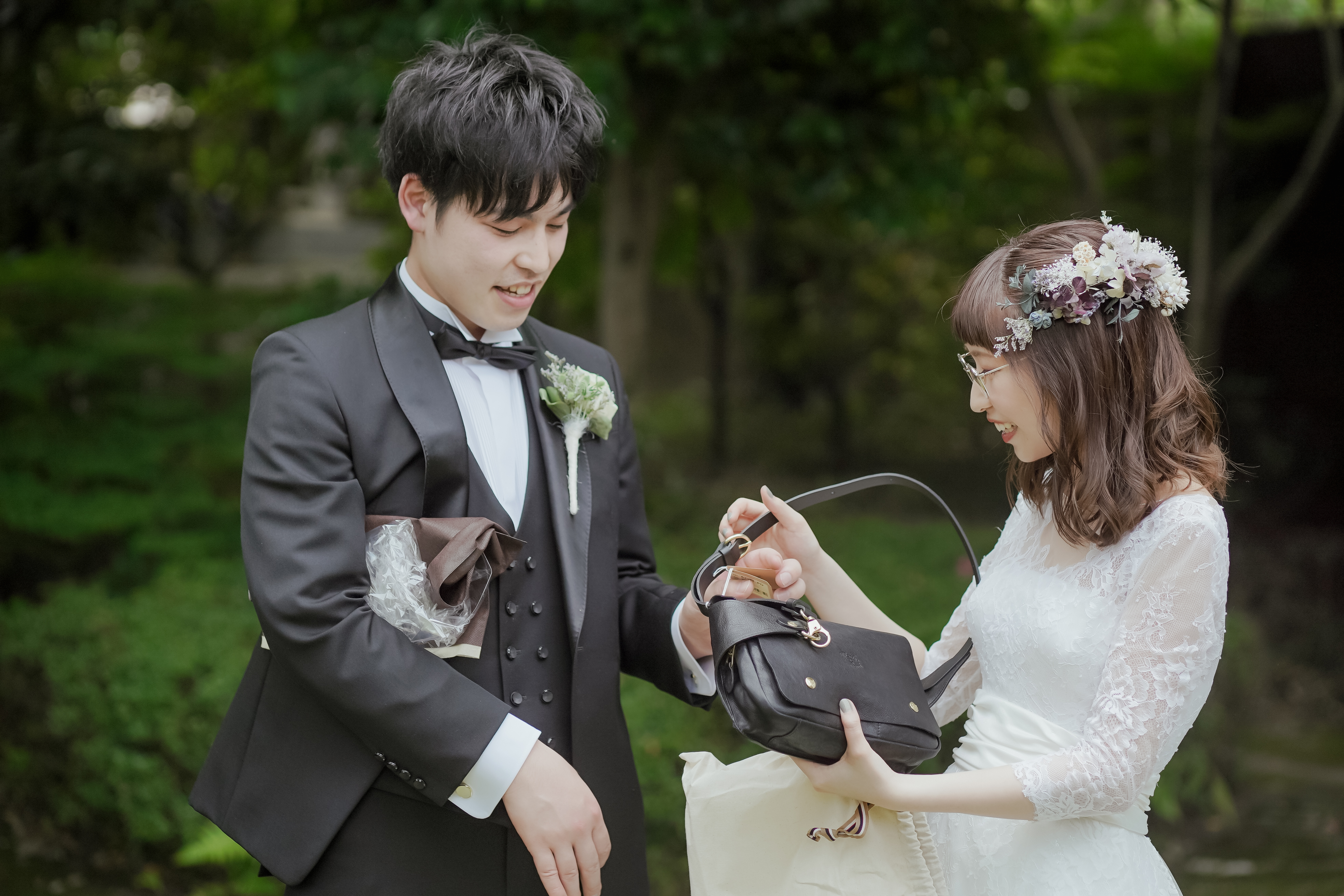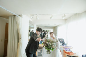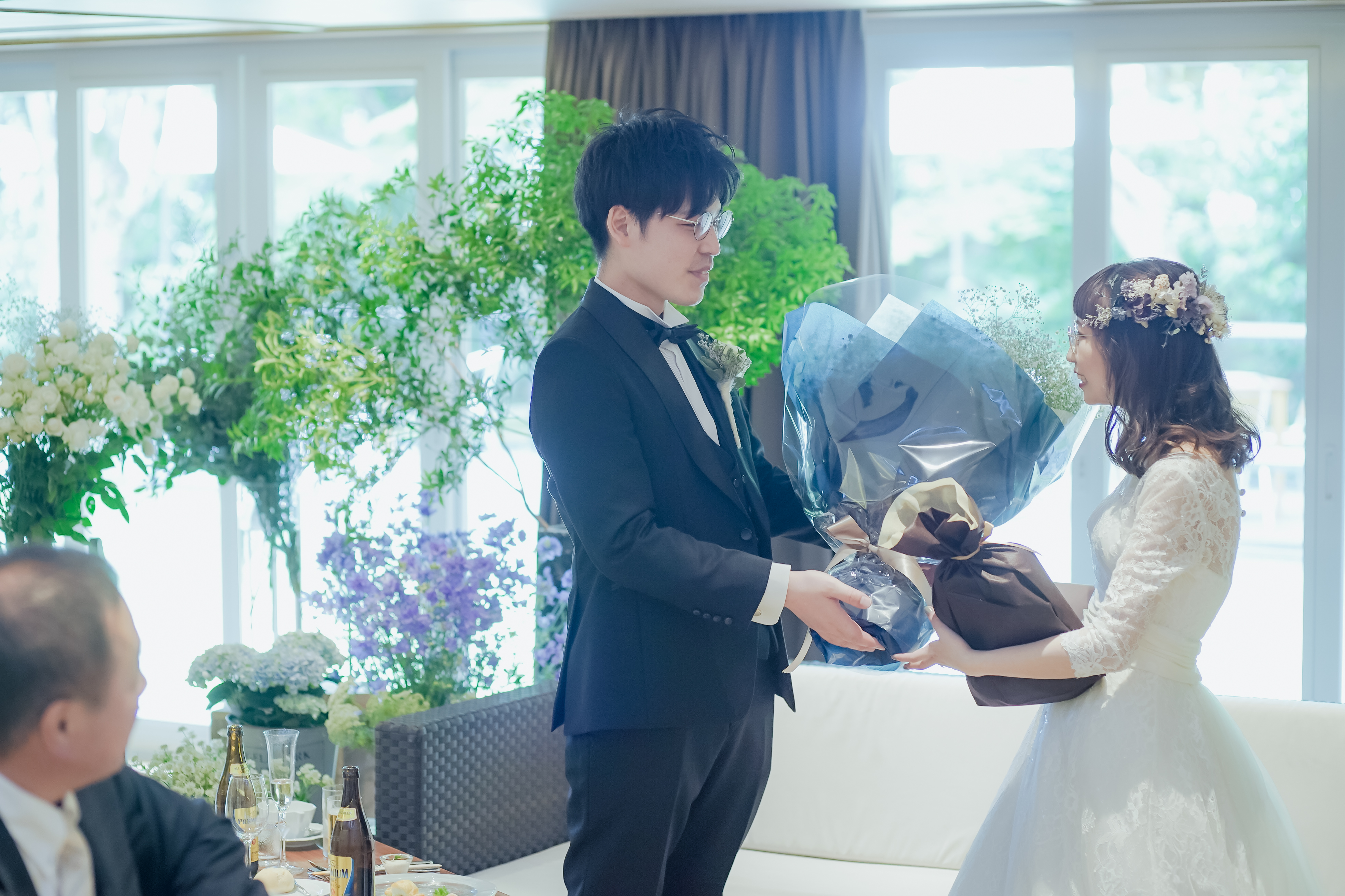 プレゼントを気に入ってもらえるよう祈っているご新郎様と