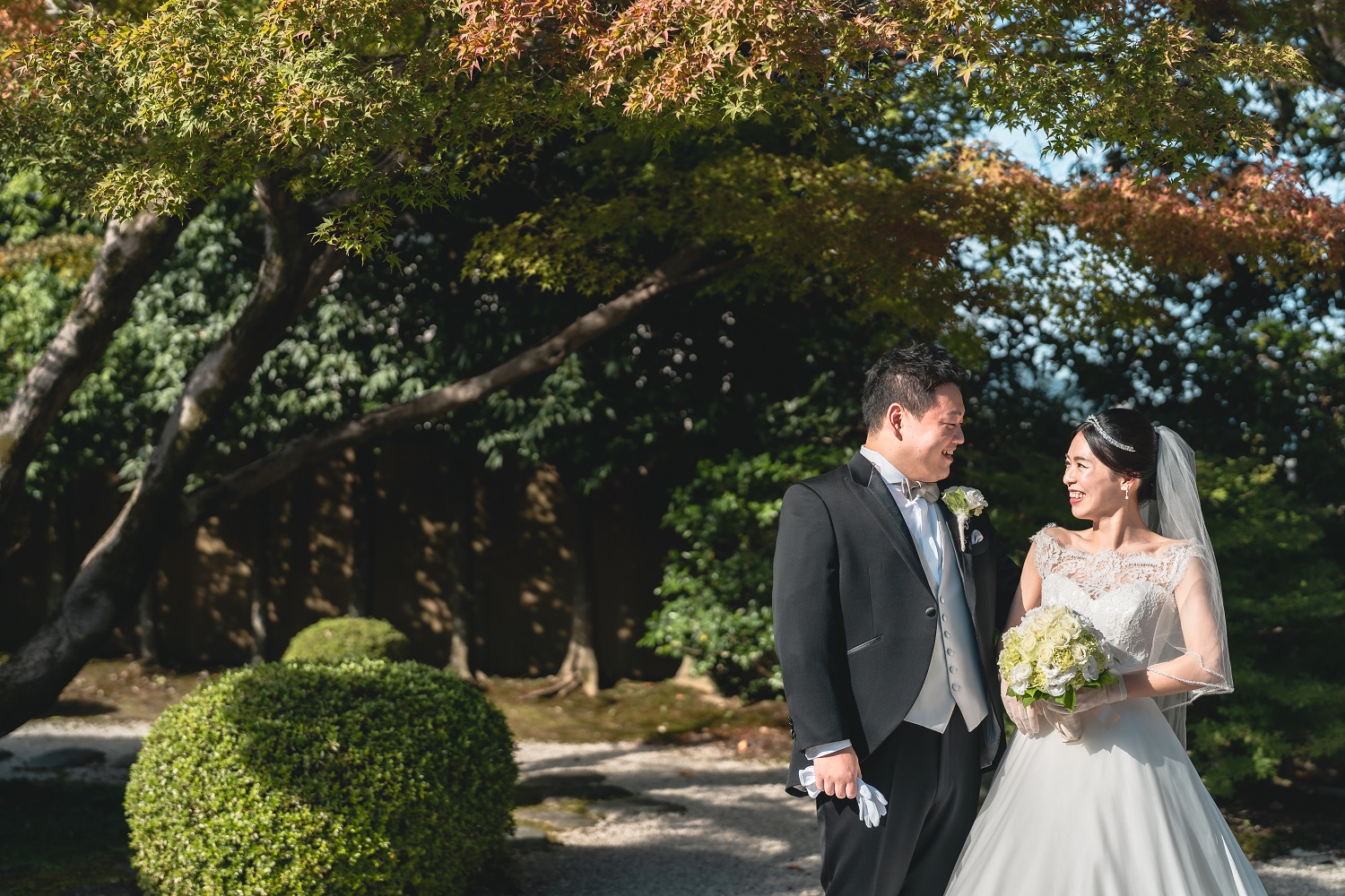 天気も良く、挙式のあとはみんなで日本庭園へ