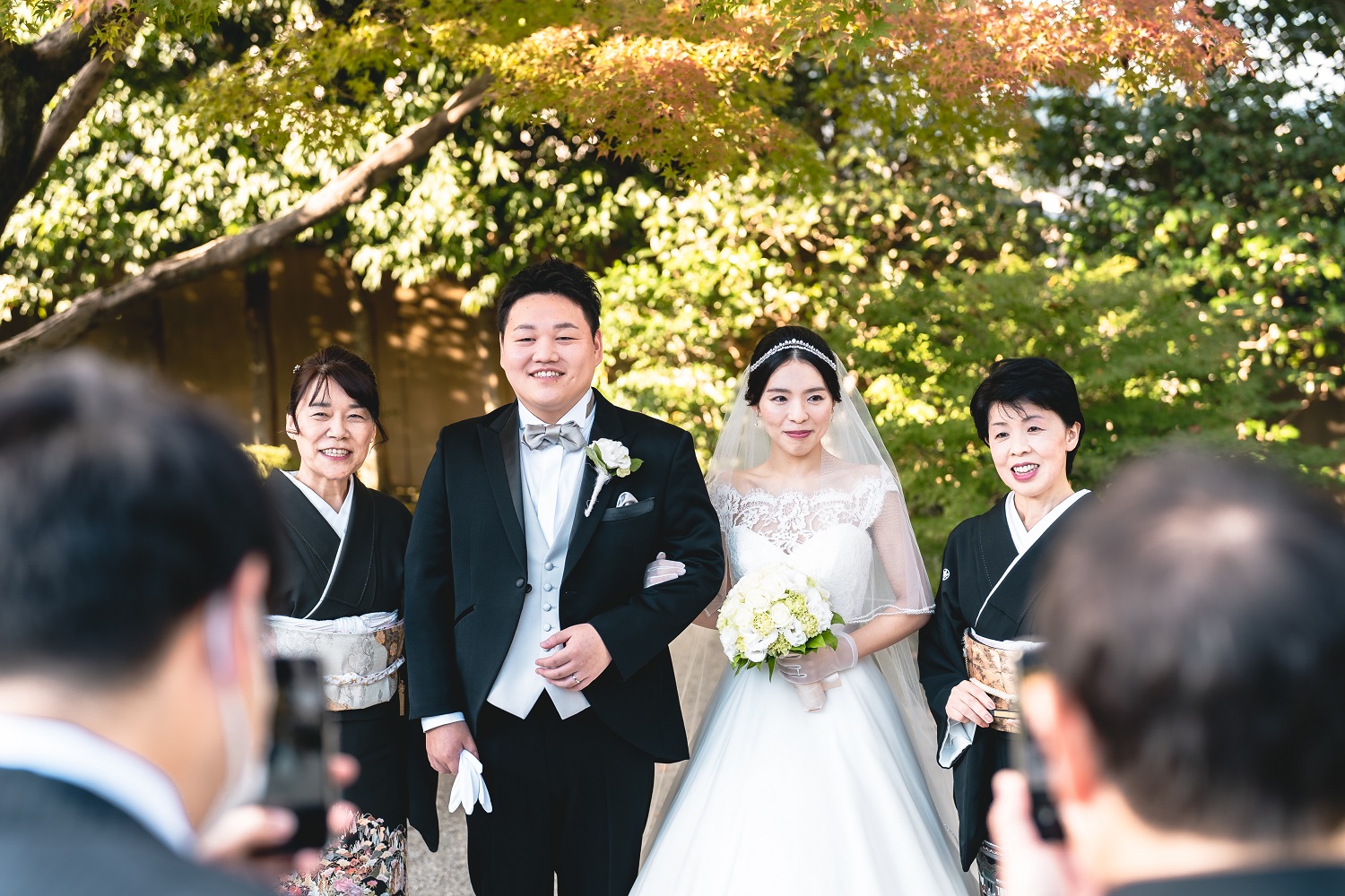 天気も良く、挙式のあとはみんなで日本庭園へ
