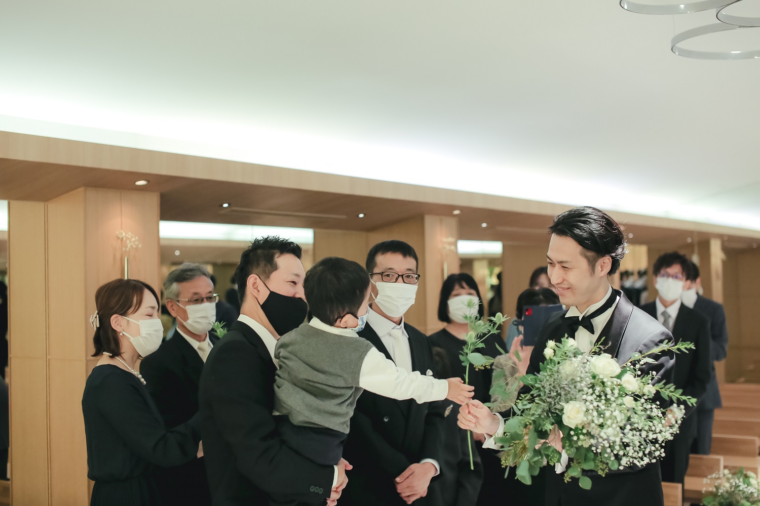 さらに新郎さん入場の際に【ブーケセレモニー】に参加してもらい、